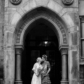 Despite the changes of 2020, today was about one thing only - celebrating Sam and Lou's love for each other and they embraced these new traditions. Once inside, the brides went straight to the ceremony hall and the guests waited outside for the call from the registrar, face masks on. I was lucky enough to be allowed into the hall with the girls so I could capture those nervous smiles and glances to one another (in one spot, no moving around for me anymore). This moment is my favourite part of the day. I love to capture the stories of a wedding day, and what better story to tell, than through the image of 2 people who love each other looking, chatting and laughing whilst they wait for those words that everyone knows - "Do you Sam, take.........".