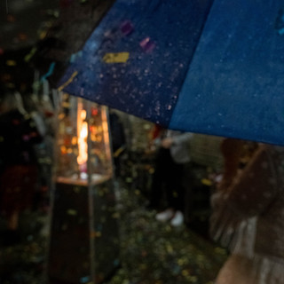 As the rain bounced off the canopy, Mrs and Mrs Fryer-Butterworth arrived and sprinted towards the restaurant. Now, we all love a good surprise, and as the girls readied themselves to embrace the guests - BOOM - everyones' heart skipped a beat. Confetti rained down on us all like, well, the pouring rain that had soaked some of us through already! Confetti 2020-style indeed... who needs boring standard confetti when you can get a giant party popper to blast up into the sky and rain down on you like the super stars you are.