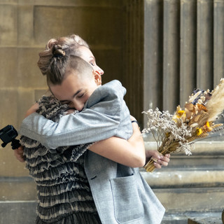 The newly weds exited the ceremony straight onto the veranda, which sits at the top of the Leeds Town Hall steps and is a great spot for a classic confetti walk, followed by some lovely family and friends photos. I am always conscious to allow the couple some time to enjoy the moment, particularly straight after the ceremony. This allows me to stand back and grab some shots of the reactions of the wedding party and one shot in particular was beautiful. Nate, suddenly grabbing his mum to give her the biggest cuddle was a moment to cherish forever.